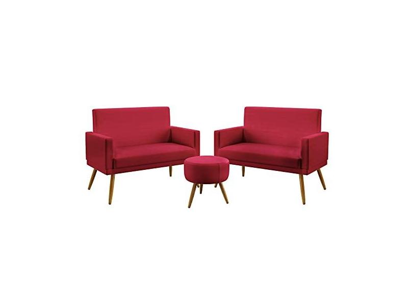 Kit 2 Poltronas Namoradeiras Decorativas Estofadas Para Sala De Estar Vega Rodapé e Puff Solar Sued Aradecor