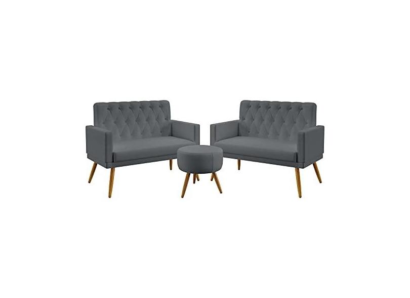 O menor preço encontrado no Brasil para Kit 2 Poltronas Namoradeiras Estofadas Para Sala De Estar Vega Rodapé E Botões Puff Solar Capitonê Sued Aradecor atualmente é R$ 901,44.