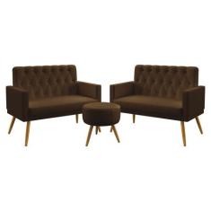 O menor preço encontrado no Brasil para Kit 2 Poltronas Namoradeiras Estofadas Sala De Estar Nina Com Rodapé E Botões Puff Solar Capitonê Sued Marrom Aradecor atualmente é R$ 918,28.