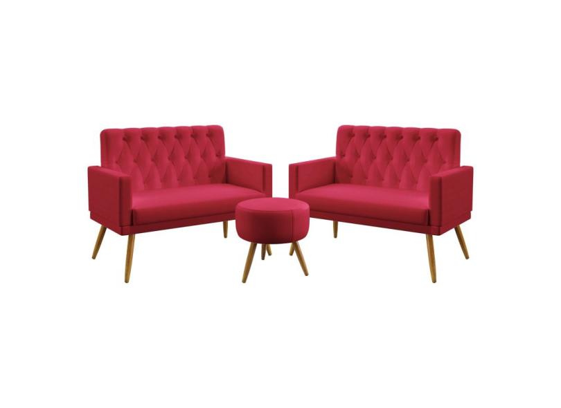 O menor preço encontrado no Brasil para Kit 2 Poltronas Namoradeiras Estofadas Sala De Estar Vega Com Rodapé E Botões Puff Solar Capitonê Sued Aradecor atualmente é R$ 901,44.