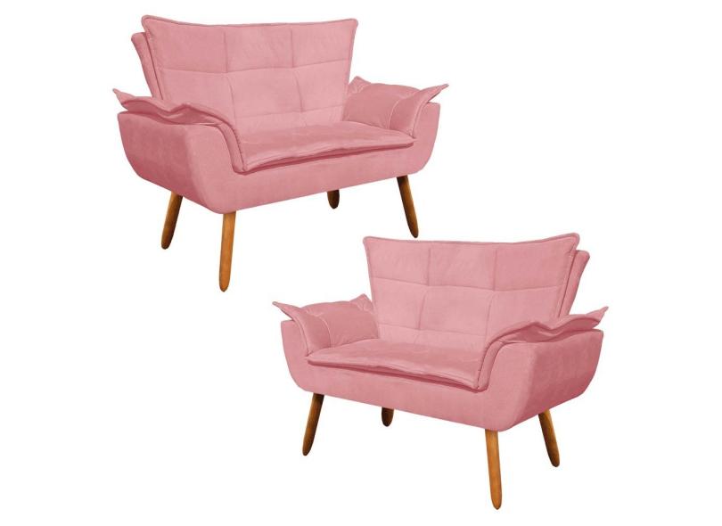 Kit 2 Poltronas Namoradeiras Pés Palito 2 Lugares Opla Suede Rose - Ibiza