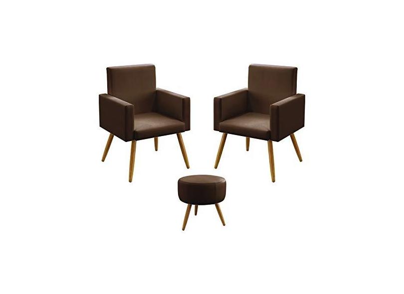 O menor preço encontrado no Brasil para Kit 2 Poltronas Nina Com Puff Solar Para Sala de Estar Couro Artificial Marrom Aradecor atualmente é R$ 680,45.