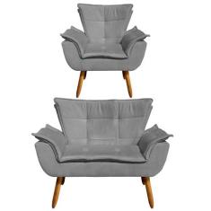 Kit Namoradeira 2 Lugares e 1 Poltrona Decorativa Pés Palito Opla Suede Grafite - Ibiza