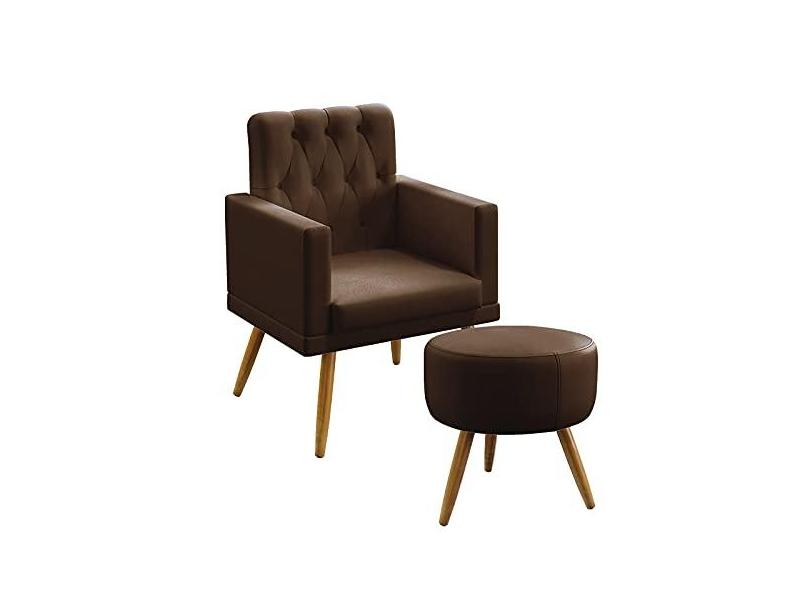 O menor preço encontrado no Brasil para Kit Poltrona Decorativa Estofada Sala De Estar Vega Rodapé E Capitonê e Puff Solar Couro Artificial Marrom Aradecor atualmente é R$ 531,70.