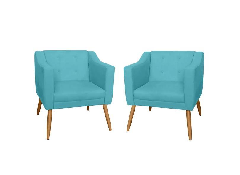 O menor preço encontrado no Brasil para Kit Poltrona Decorativa Lavinia Pés Palito Suede Turquesa - DS Estofados atualmente é R$ 766,23.