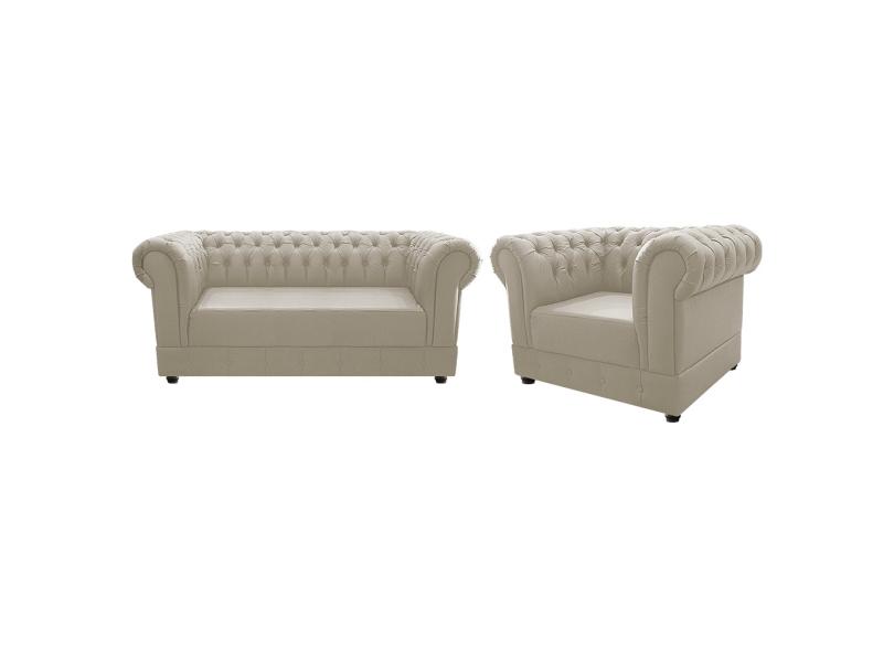 Kit Poltrona e Namoradeira Chesterfield Ana Suede Bege - Doce Sonho Móveis