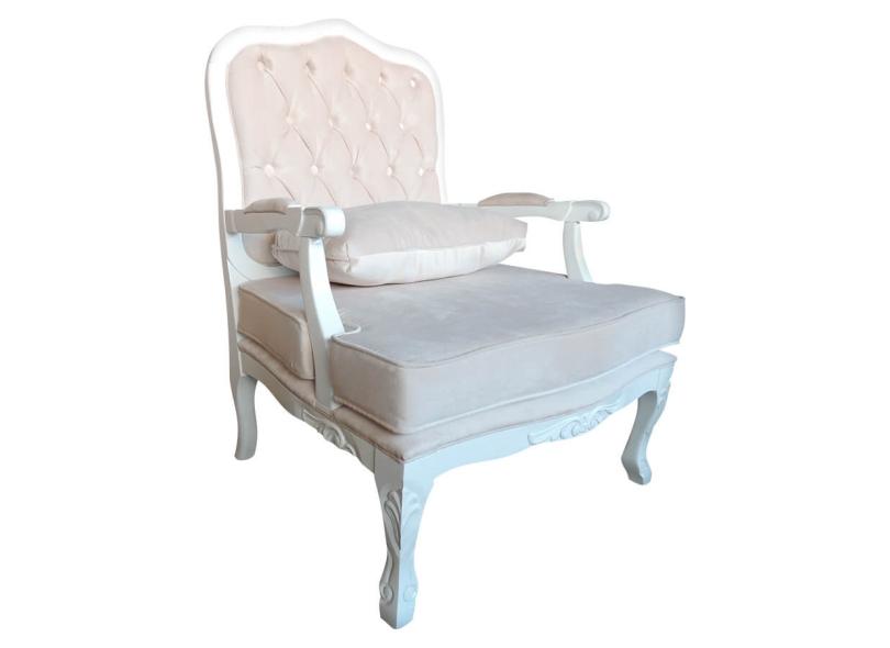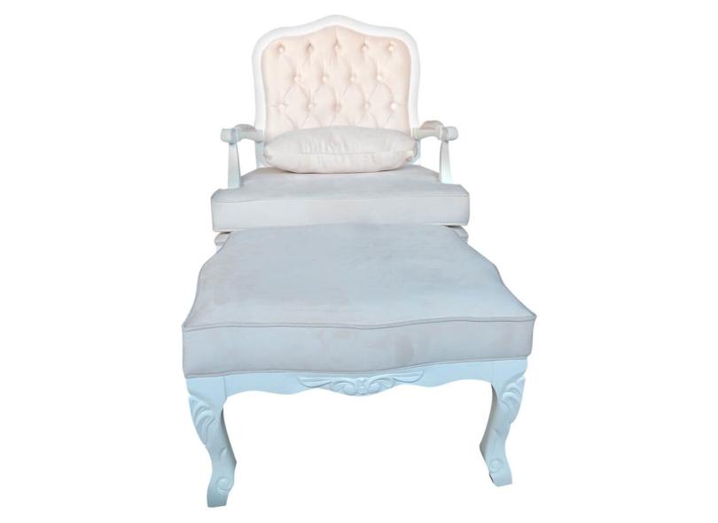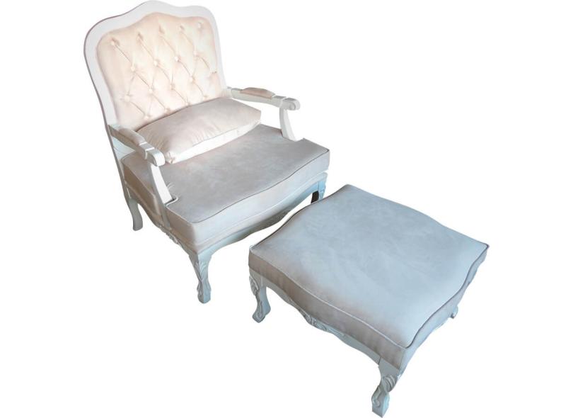 Kit Poltrona e Puff Imperatriz e Capitonê Bege