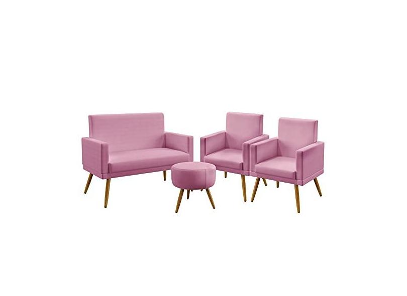 Kit Poltrona Namoradeira e 2 Poltronas Decorativas Almofadas Nina Com Rodapé Puff Solar Sued Rosê Aradecor