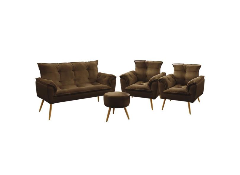 Kit Poltrona Namoradeira e 2 Poltronas Decorativas Estofada Para Sala De Estar Opala Puff Solar Sued Marrom Aradecor
