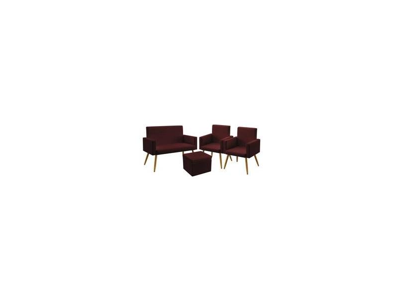 Kit Poltrona Namoradeira e 2 Poltronas Decorativas Vega com Puff Quasar Sued Bordô Aradecor