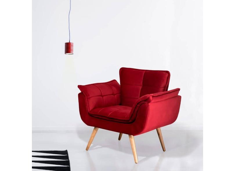 Poltrona Bali com Pés Palito Castanho - Veludo Bordô - 70cm.