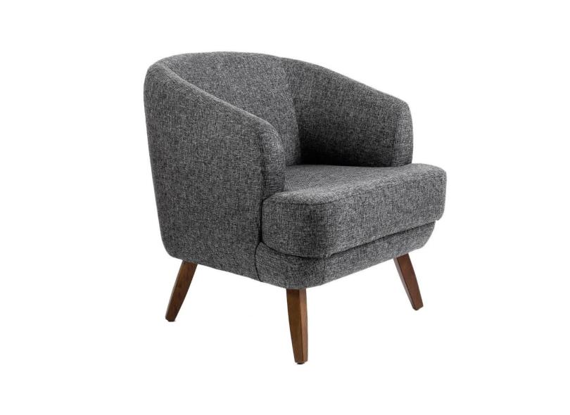 Poltrona Bouji Pés Madeira Castanho com Rústico Mesclado