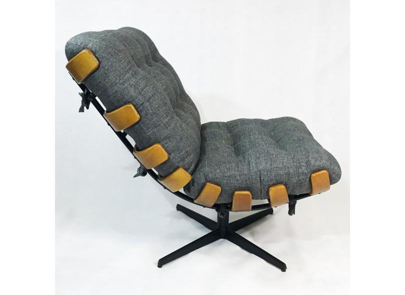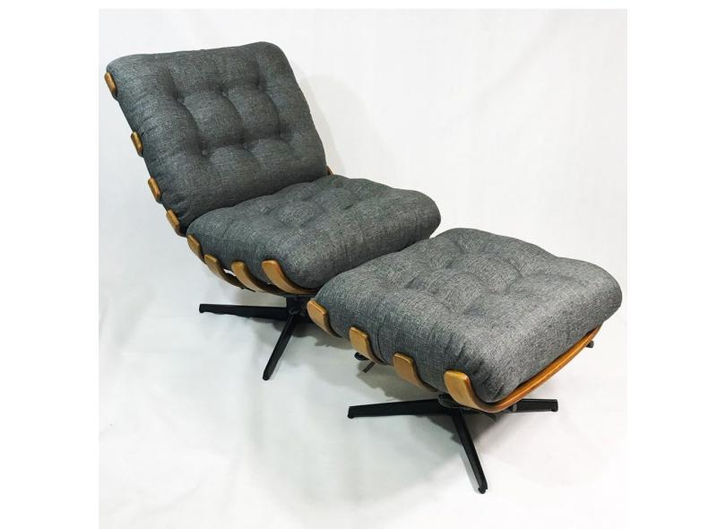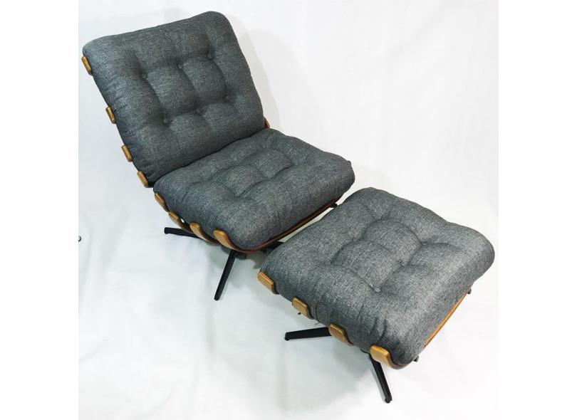 Poltrona Costela com puff Linho grafite base giratória - Poltronas do Sul