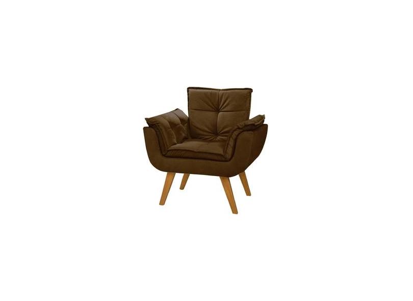 Poltrona Dani Suede Café Cadeira Decorativa Sala Recepção Pés Caramelo