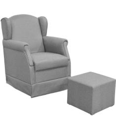 Poltrona de Amamentação com Balanço e Puff Elisa P02 Linho Escuro - Lyam Decor