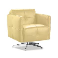 Poltrona Decorativa Astúria Base Giratória Couro Bege - Mempra