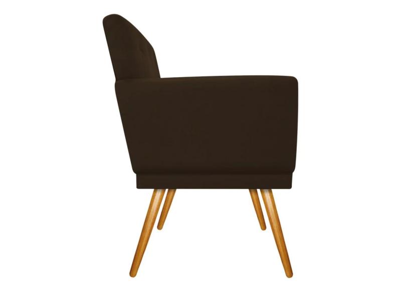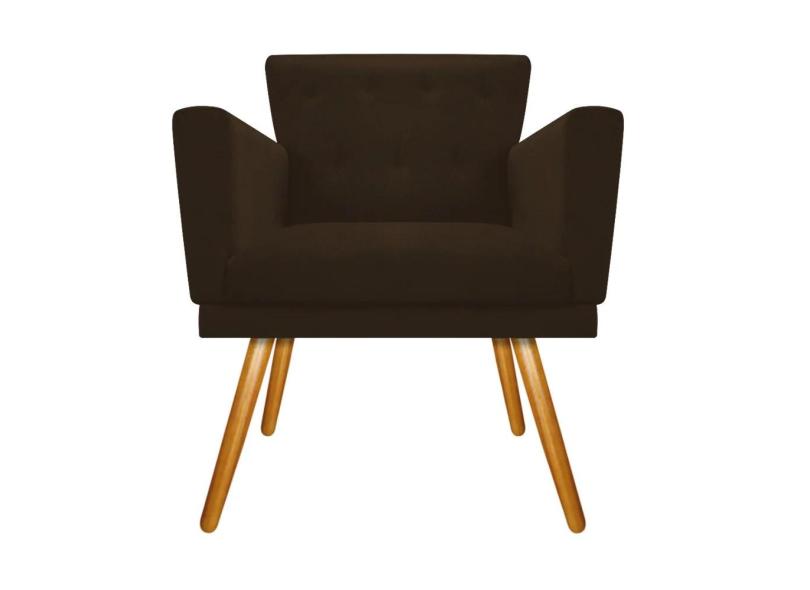 Poltrona Decorativa Aurora Pés Madeira Suede Marrom