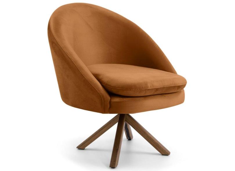 Poltrona Decorativa Base Giromad Madeira Rafa B-262 Veludo Telha - Domi