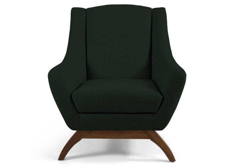 Poltrona Decorativa Base Manu Madeira Juliet B-303 Veludo Verde Musgo - Domi