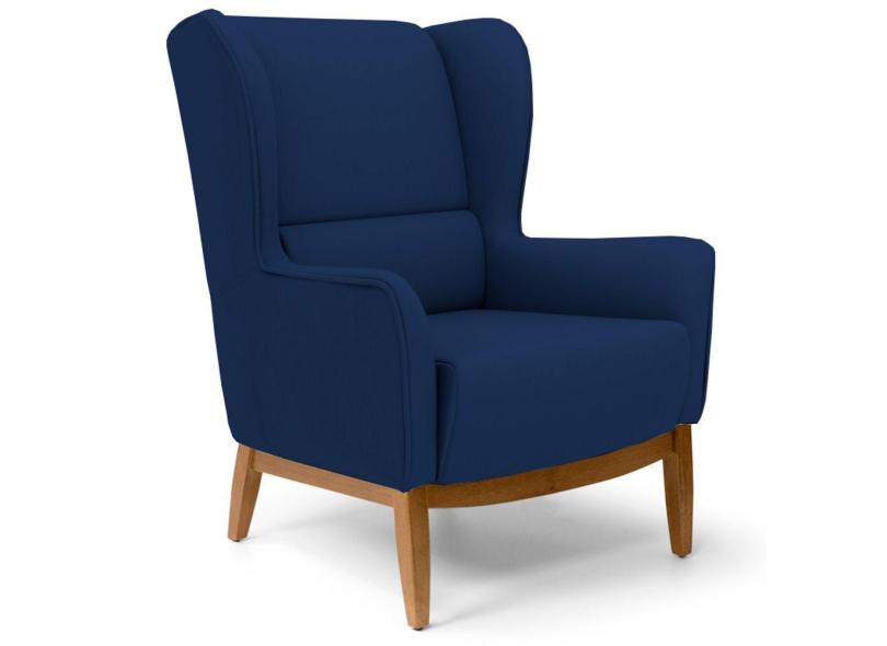 Poltrona Decorativa Base Manu Madeira Milena B-304 Veludo Marinho - Domi