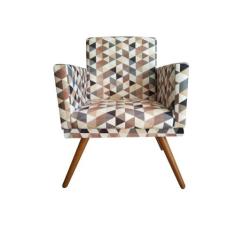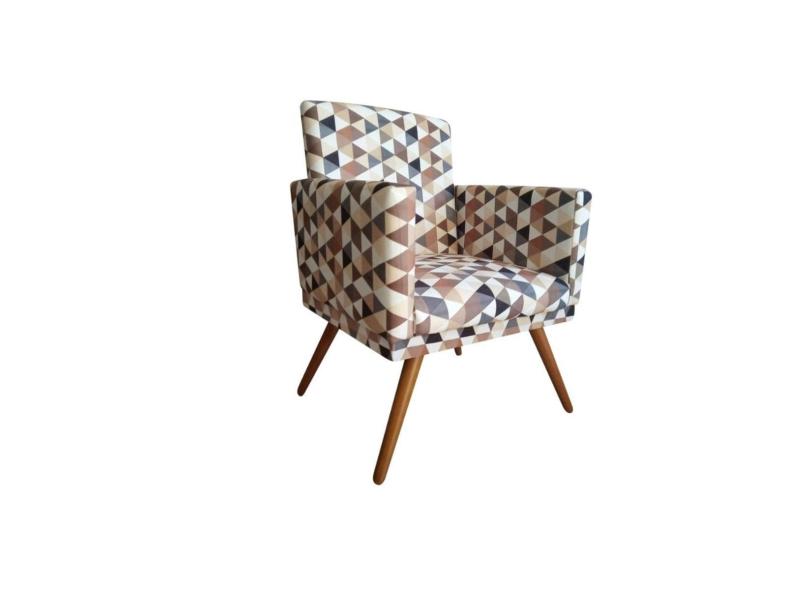 Poltrona Decorativa Bia Suede Triângulo Bege Pés Madeira Mz Decor