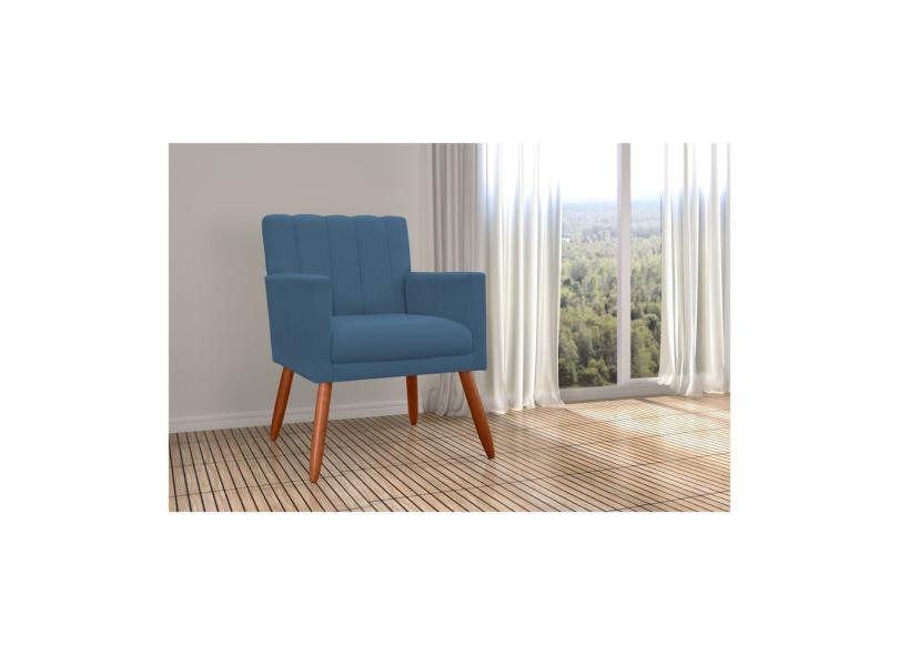 Poltrona Decorativa Cecilia Suede Marinho Pés Madeira Ms Decor