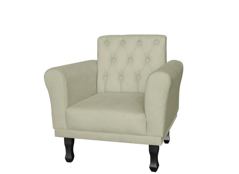 Poltrona Decorativa Classic Pés Luis XV Suede Bege - DS Estofados
