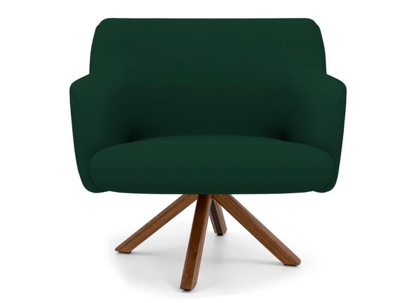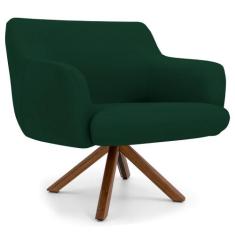 Poltrona Decorativa Giratória Base Giromad Madeira Jade B-303 Veludo Verde Musgo - Domi