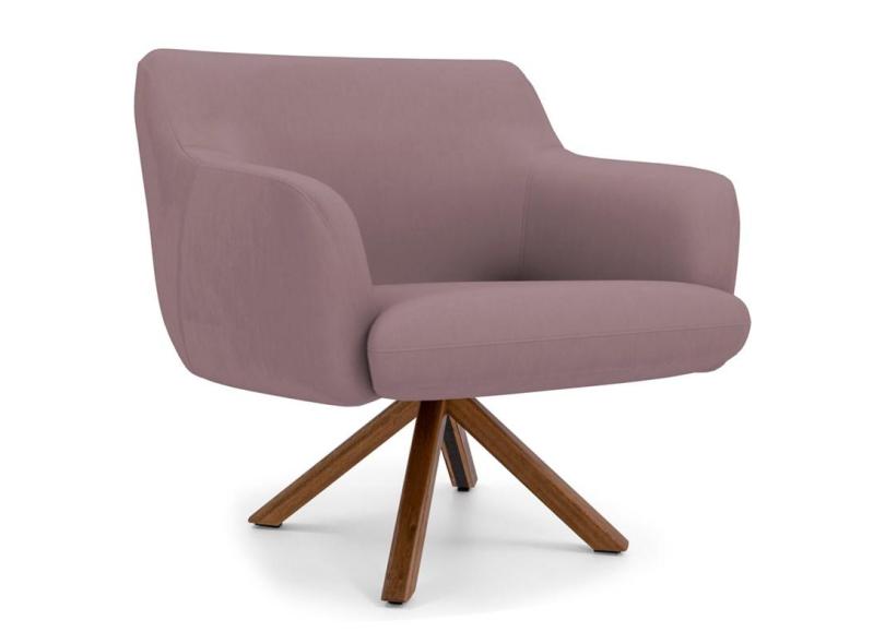 Poltrona Decorativa Giratória Base Giromad Madeira Jade B-305 Veludo Rosê - Domi