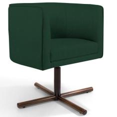 Poltrona Decorativa Giratória Base X Betina D02 Linho Verde Musgo C-117 - Lyam Decor
