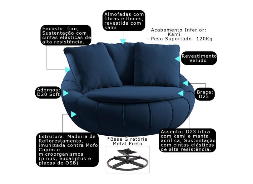 O menor preço encontrado no Brasil para Poltrona Decorativa Giratória Sala de Estar Afrodite Veludo Marinho - Gran Belo atualmente é R$ 2.511,11.
