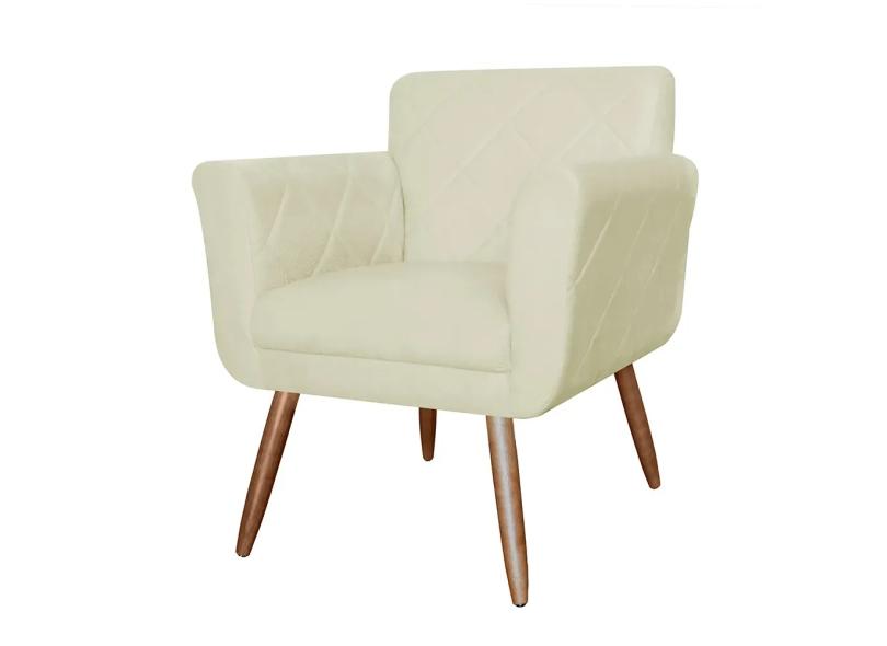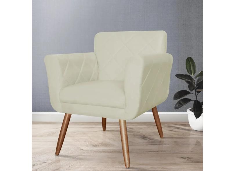 Poltrona Decorativa Isabela em Tressê Pés Palito Suede Bege - DS Estofados