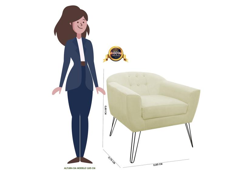 Poltrona Decorativa Jolly Pés Aramado Suede Bege - DS Estofados
