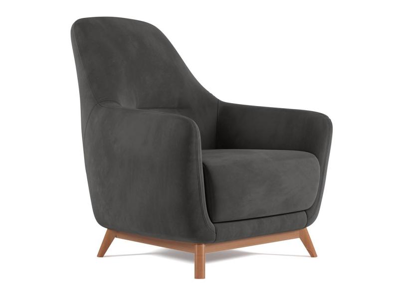 Poltrona Decorativa Molly Base Castanho M08 Veludo Grafite - Mpozenato