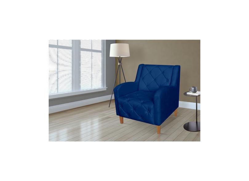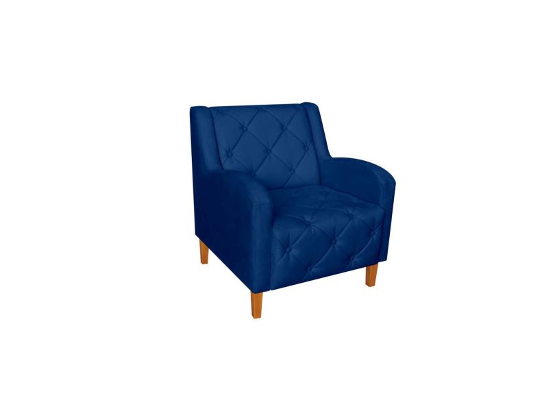 Poltrona Decorativa Munique Suede Marinho Pés Madeira Ms Decor