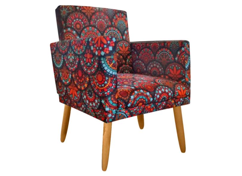 Poltrona Decorativa Nina Pés Retrô Rodapé Mandala