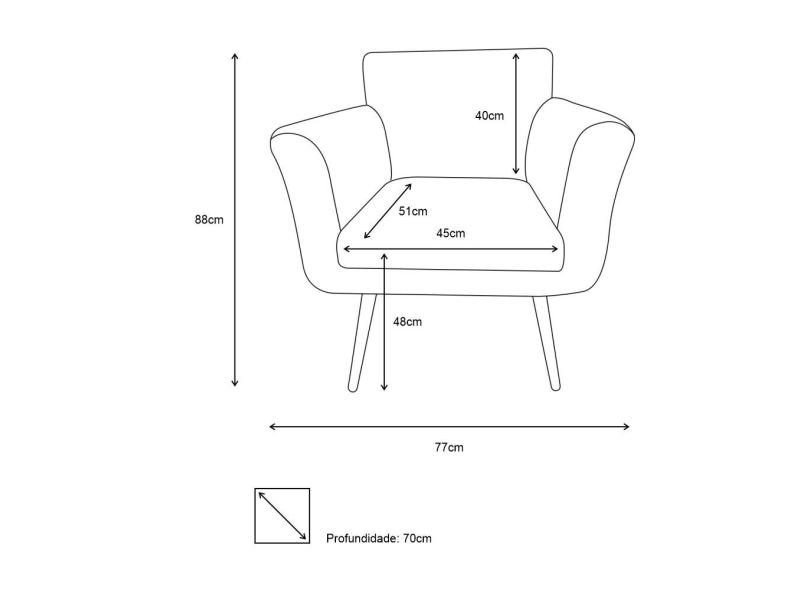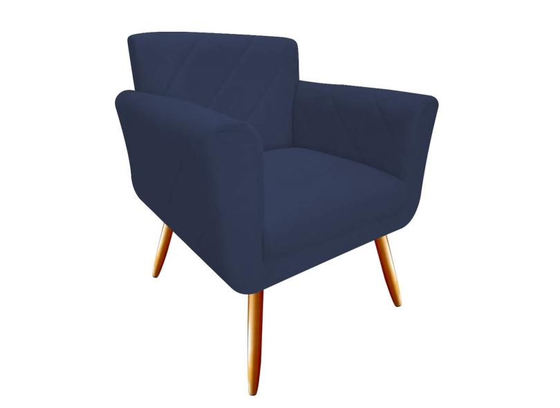 Poltrona Decorativa Sabrina Suede Marinho Pés Madeira Mz Decor