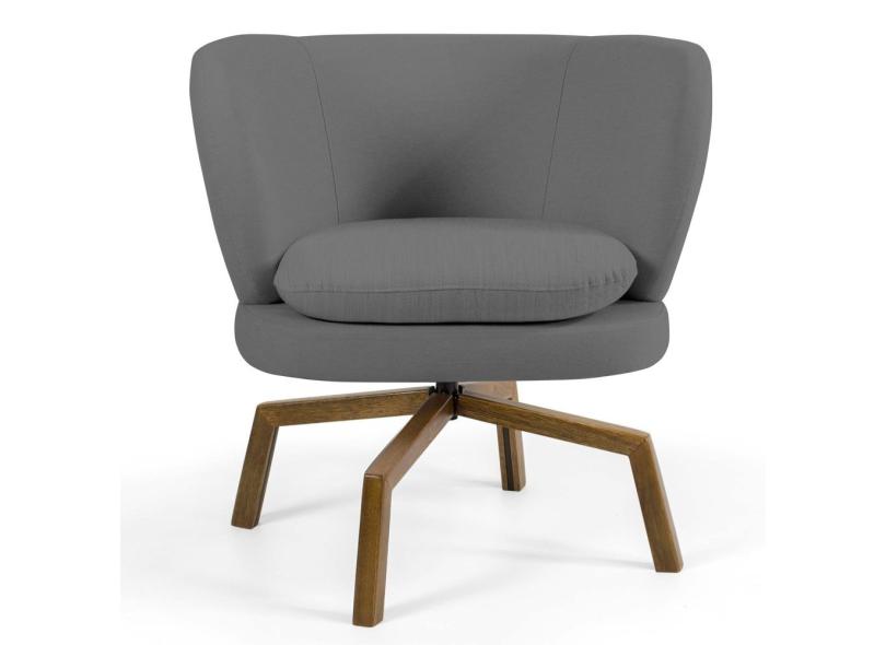 Poltrona Decorativa Sala de Estar Melissa Base Ka Giratória Castanho C-416 Linho Escuro - Domi