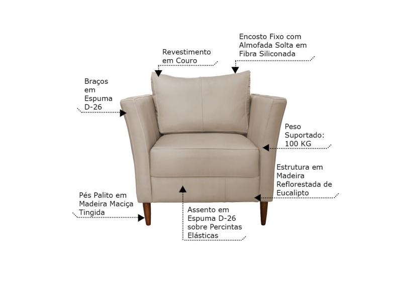 Poltrona Decorativa Sala de Estar Pés Palito Lubbock Couro