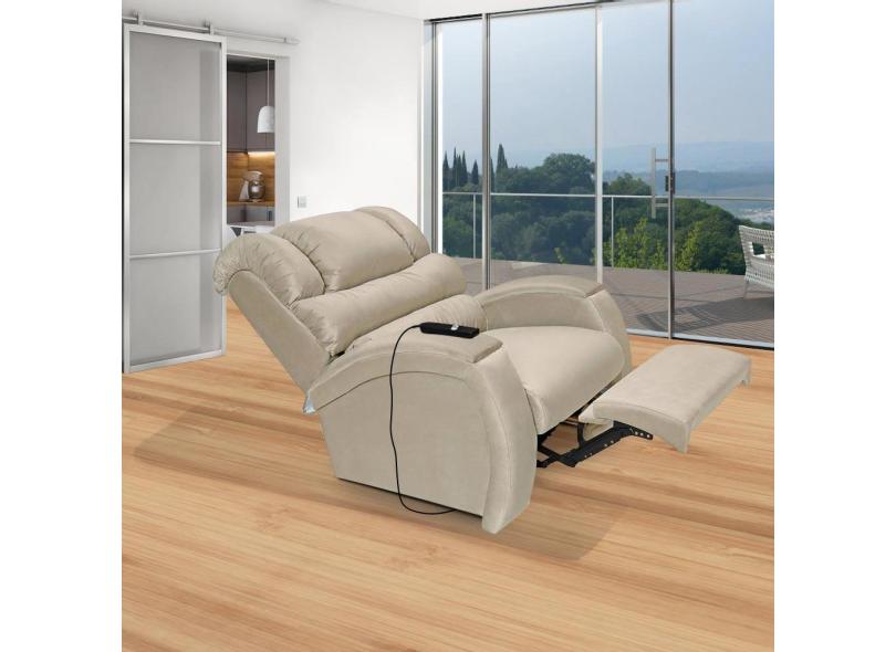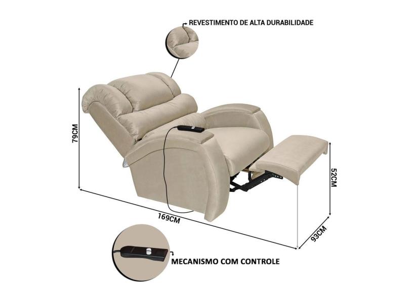 Poltrona Do Papai Retrátil Reclinável Eletrica Com Controle Veludo Imperatriz Império Bege