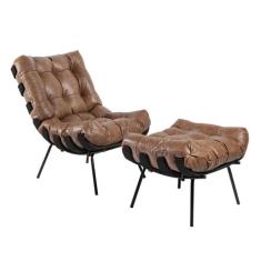 Poltrona e Puff Decorativos Sala de Estar Costela Base Couro Mel - Gran Belo