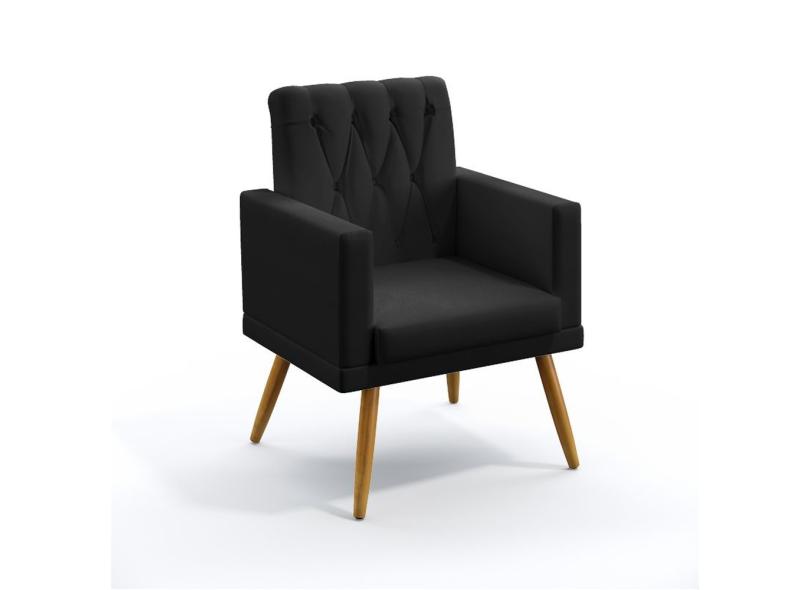 Poltrona Estofada Vega Com Rodapé e Botões Em Capitonê Couro Artificial Aradecor