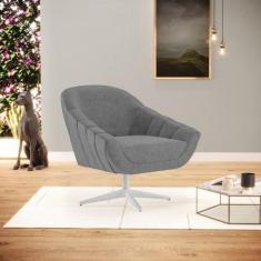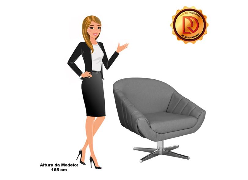 Poltrona Giratória Giovana Linho Grafite A26 Base Cromada - D'Rossi