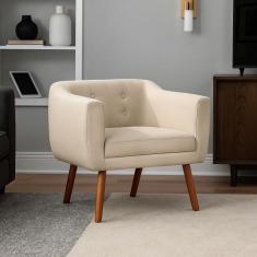 Poltrona Julia Linho Fino Bege A27 Pés Palito Castanho D'Rossi