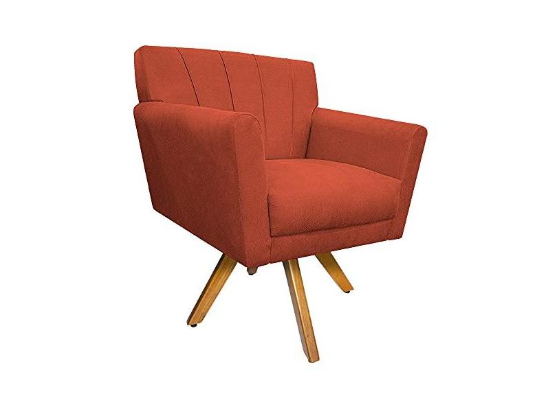 Poltrona Laura Base Giratória de Madeira Suede Terracota - ADJ Decor