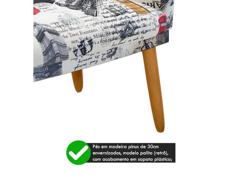 Poltrona Nina para Atendimento Pés Madeira Rodapé Paris