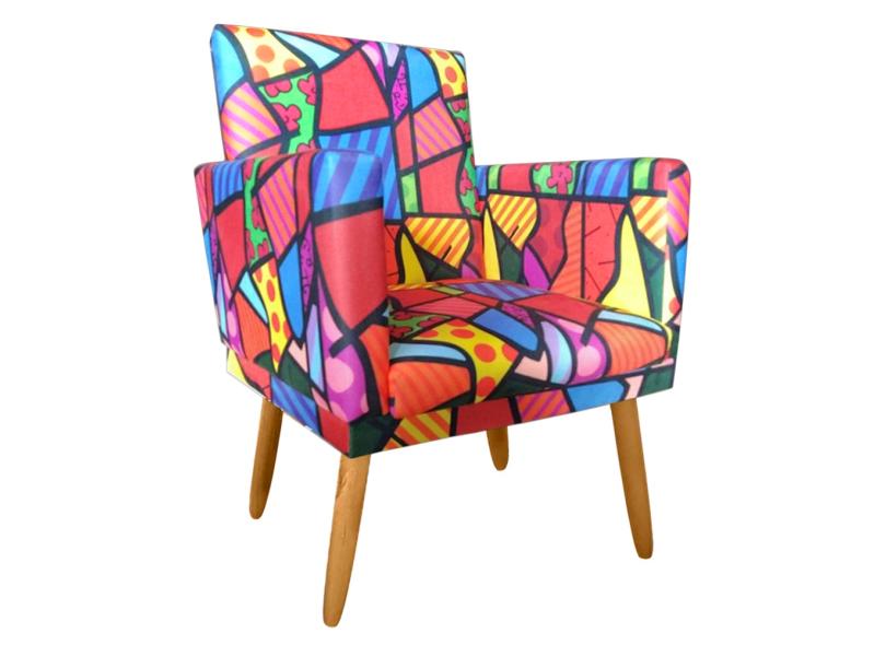 Poltrona Nina para Recepção Pés Madeira Rodapé Estampa Romero