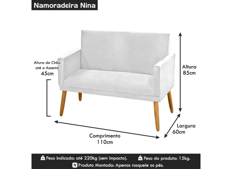 Poltrona Romântica Namoradeira Estofada Pés Retrô Suede