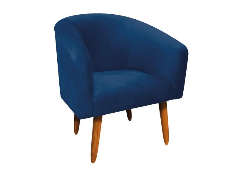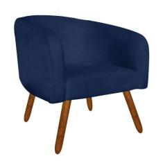 Poltrona Stella Suede Marinho Pés Palito Castanho D'Rossi