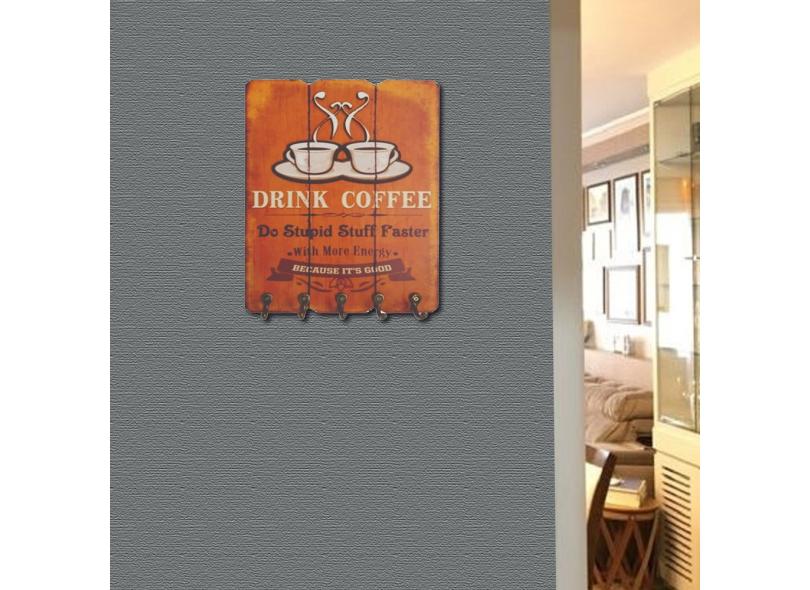 Porta Chaves De Parede Café Em Alto Relevo Decoração Porta Chaves Mdf Lar Doce Lar